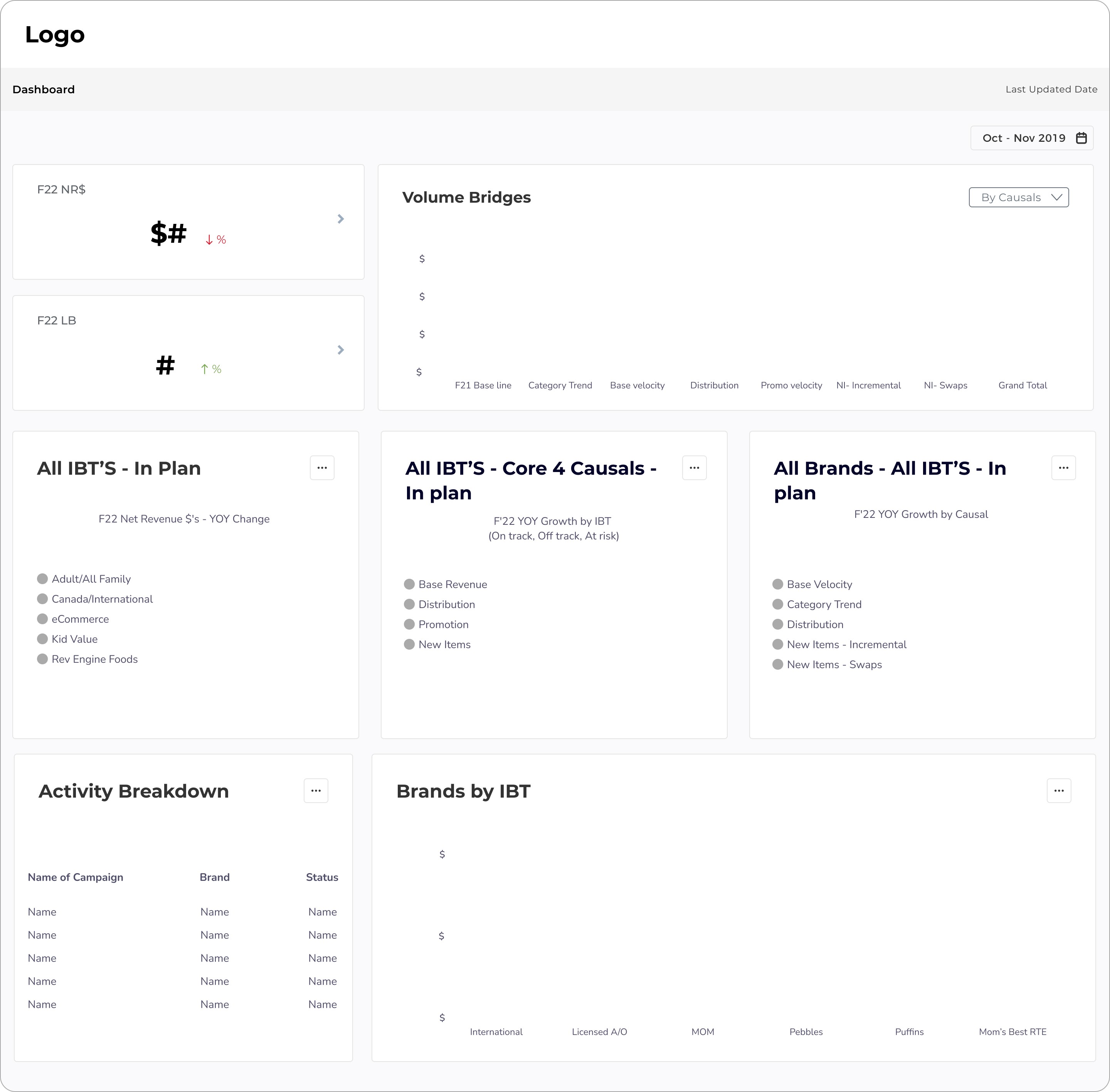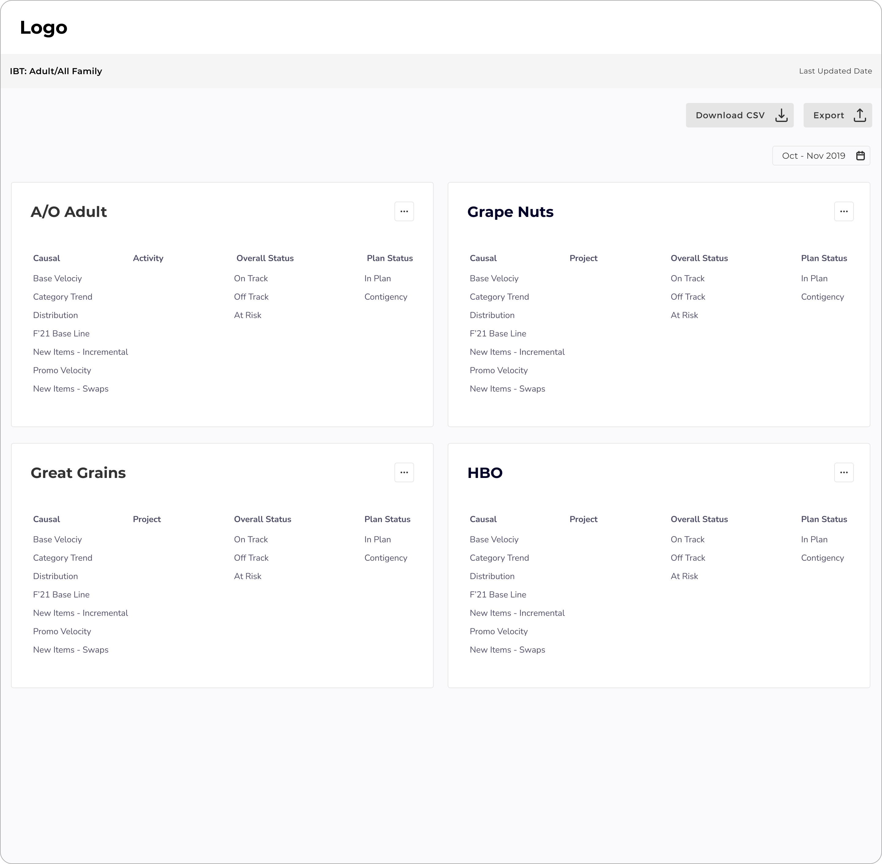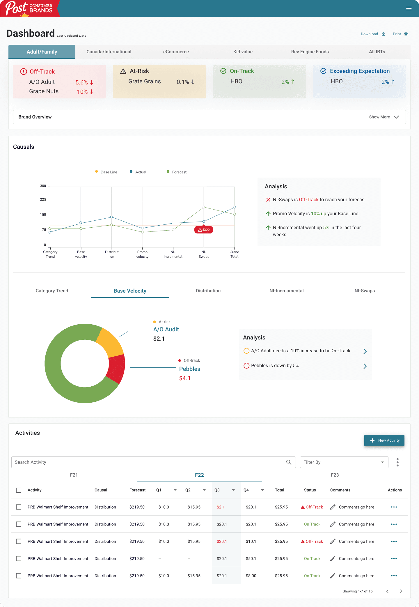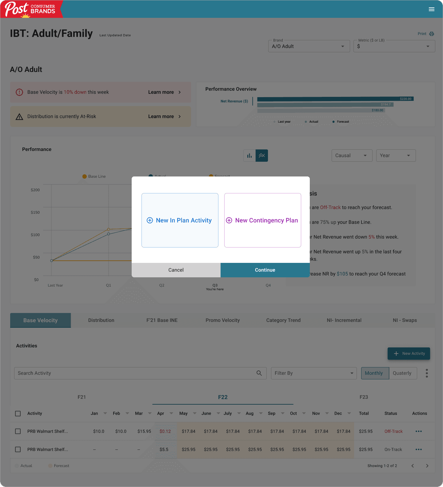 The IBT overview allows users to quickly identify the brands that are off-track, on-track, and at-risk within an specific IBT.