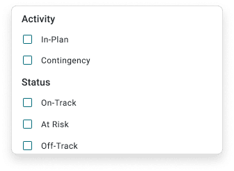 Filter by status or type of activity (In-plan or contingency)